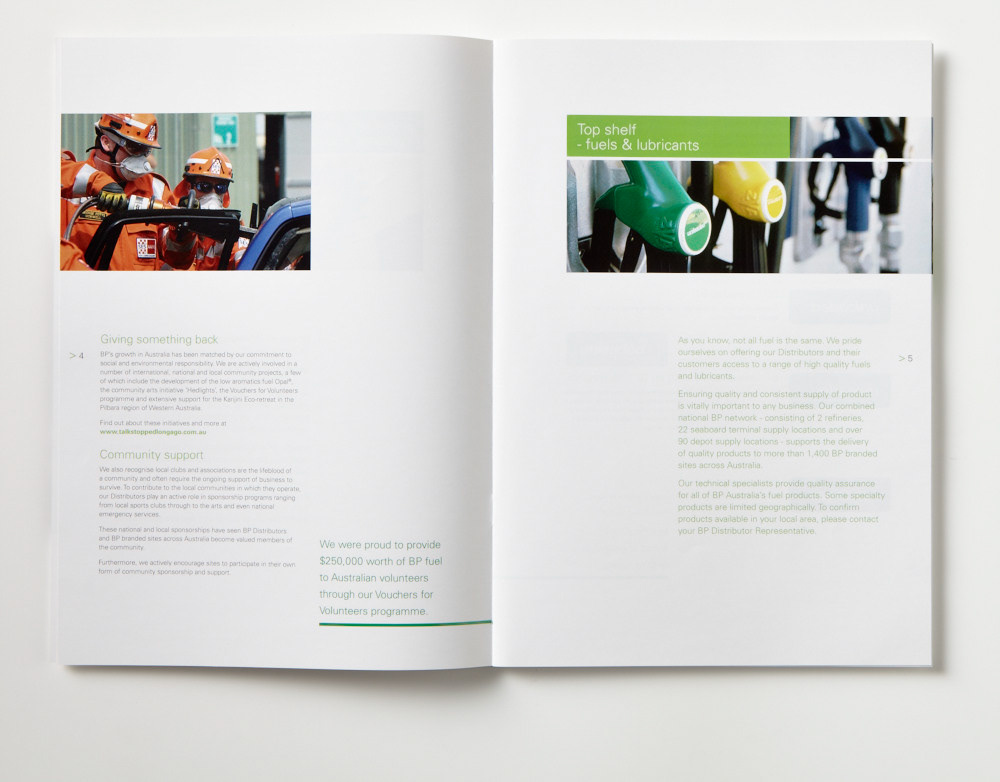 24 pp brochure designed for BP Australia, using global brand guidelines.