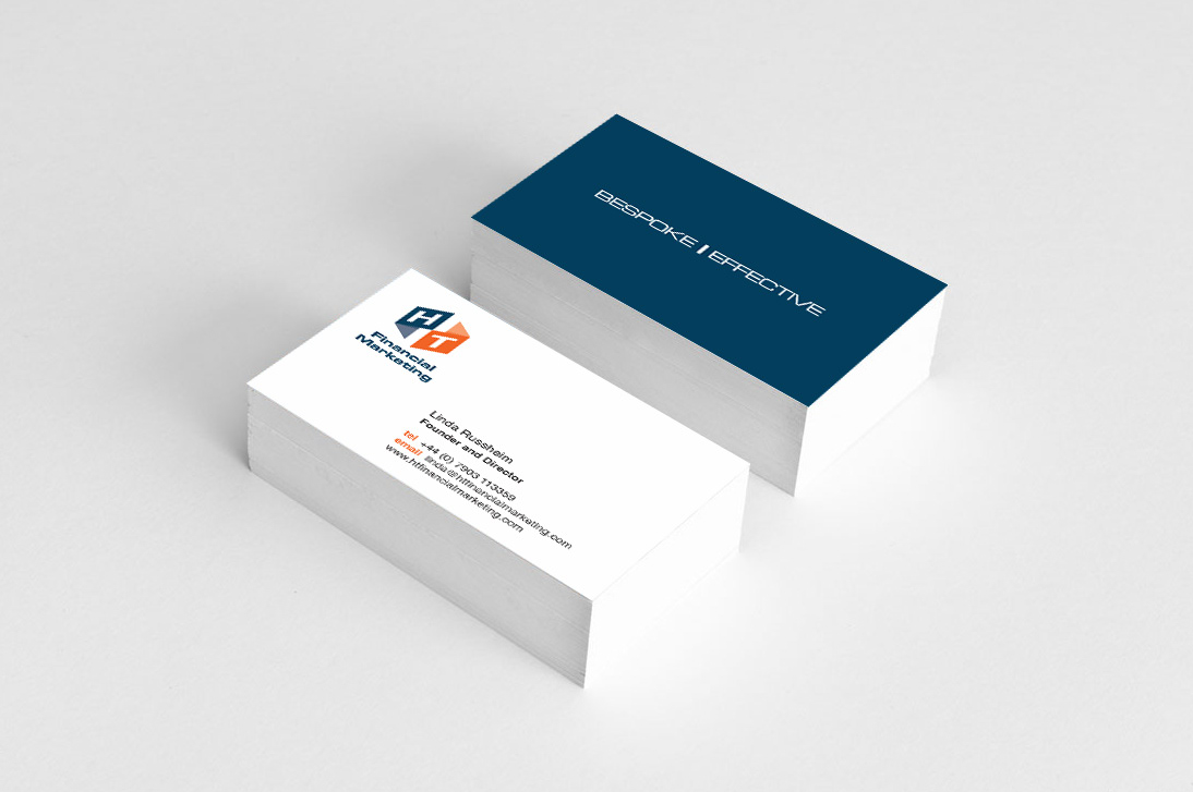 Branding and collateral design by Sabrena Ellison for HT Financial Marketing. They wanted their new brand to represent their dynamic approach and build on their existing brand pillars of Bespoke and Effective. The icon itself can be used as a standalone graphic element and is still legible at a reduced size. Collateral included a logo suite, brand guidelines, web sliders, social media thumbnails and business cards. Website designed and developed by INFOBO, UK.
